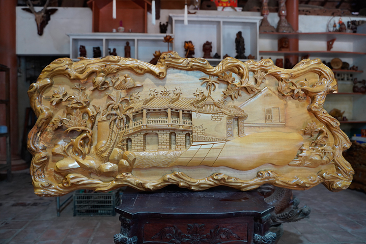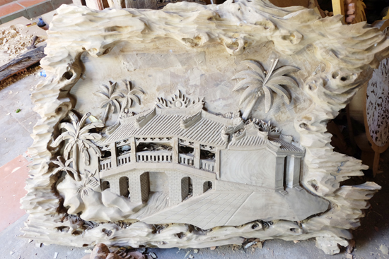 Phù điêu khắc gỗ cảnh Chùa Cầu Hội An