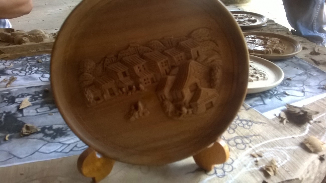 Phù điêu trên đĩa gỗ